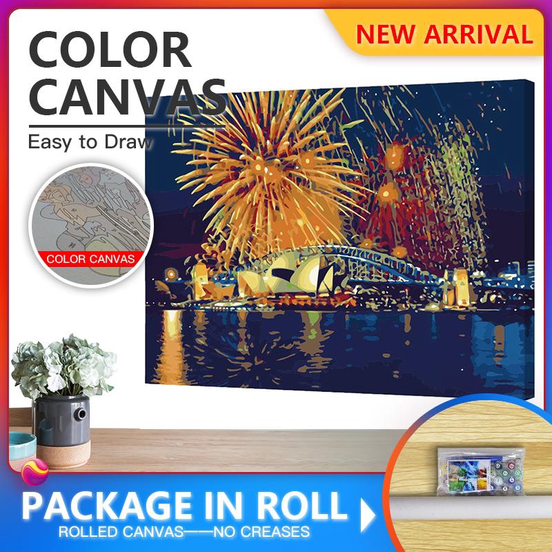 Sz Unframed Diy Paint By Numbers On Canvas Sydney Fireworks Xz6848yh Shopee Singapore