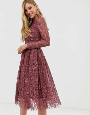 Asos Design Langarmliges Midi Ballkleid Aus Spitze Violett Damenmode Suchmaschine Ladendirekt De
