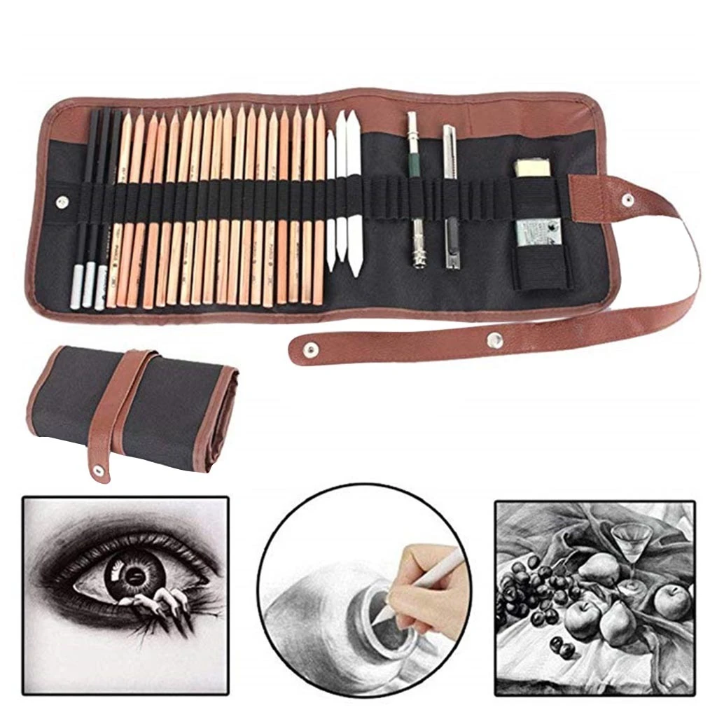 Art Supplies Artist Sketching Kit Professional Sketching Painting Pencils Canvas Roll Up Pencil Case For Beginners Child Aliexpress