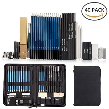 Bigmouse Professional Sketching Set Drawing Pencil Art Tool Kit With Sketch Paper Zipper Case And Graphite Pencils And Accessories For Artists Student Beginners 40 Pieces Amazon In Home Kitchen