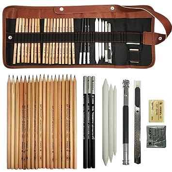 Amazon Com Tinpa 33 Pcs Professional Sketch Kit Sketching And Drawing Pencils Charcoal Art Set Includes Charcoals Pastels And Zippered Carry Case For Beginners Artist