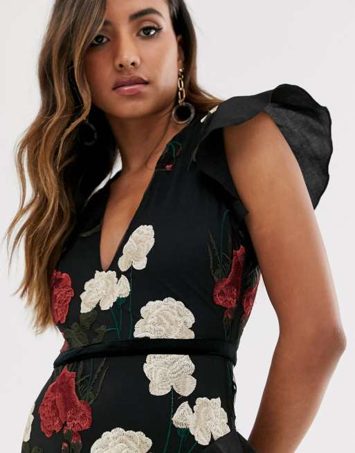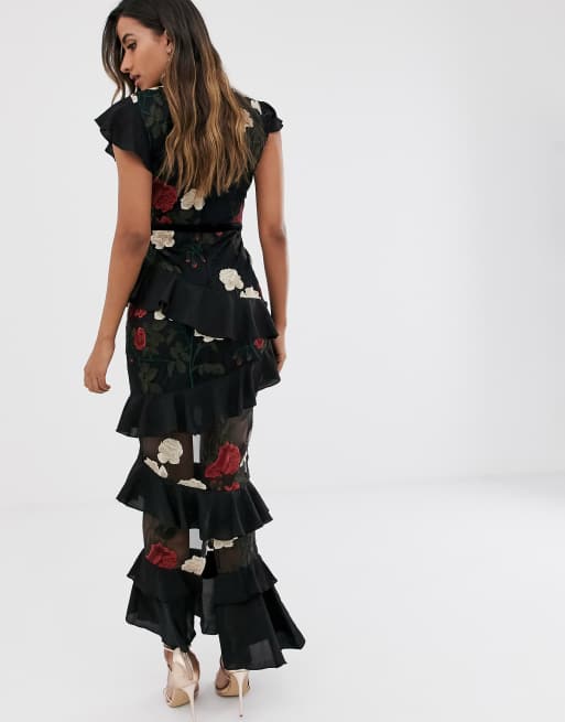 Forever U Robe Longue Brodee A Volants Superposes Noir Asos